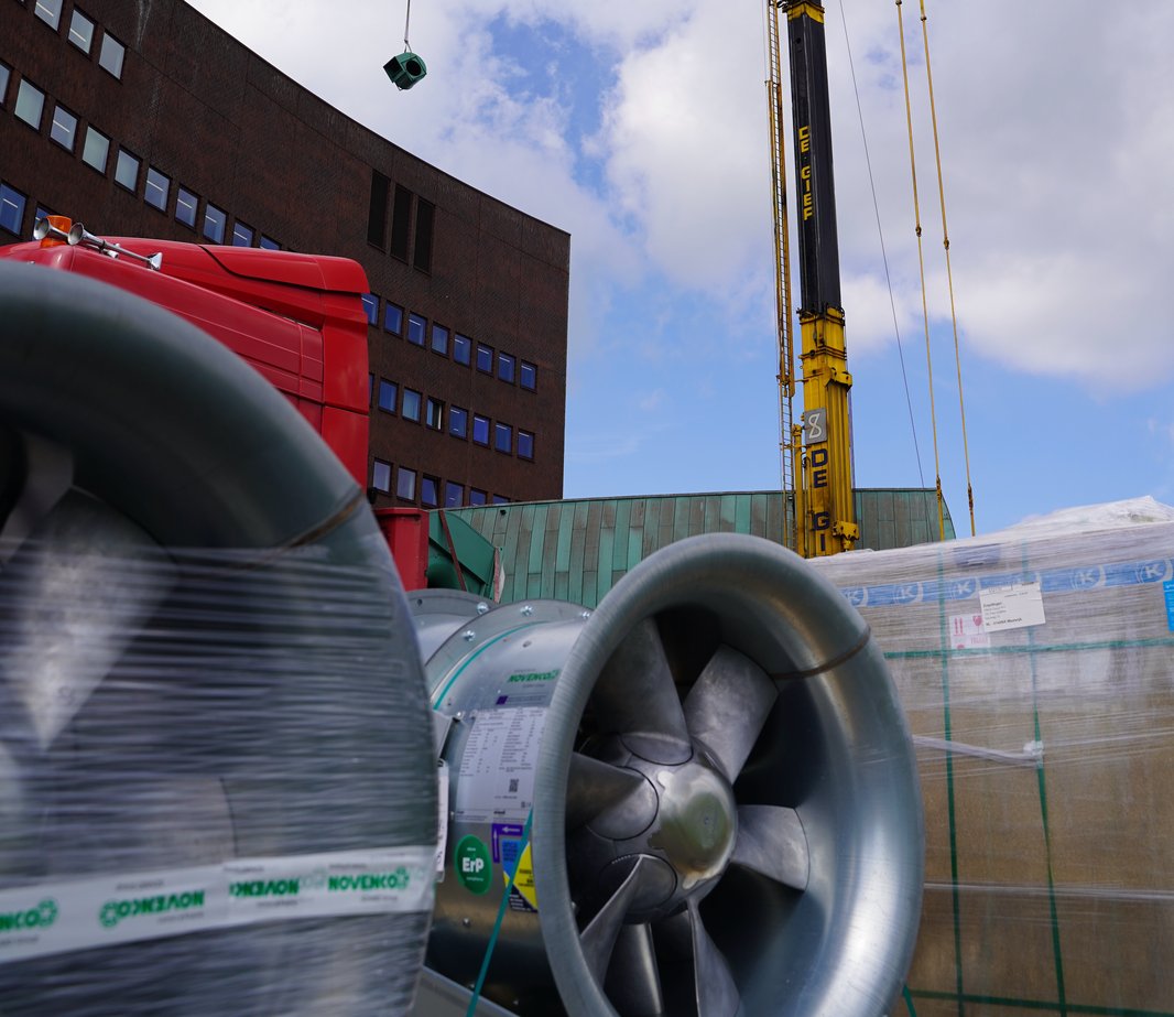 Voor dit project hebben we gekozen om de warmtewielen te vervangen voor warmtewielen met een hoger rendement en maximale vochtterugwinning. Daarbij zijn de IE5 EC+ stuwventilatoren met externe frequentieregelaars van Danfoss geplaatst. Dit gaf een systeemrendement van +85%. De voordelen van deze stuwventilatoren zijn onder andere: